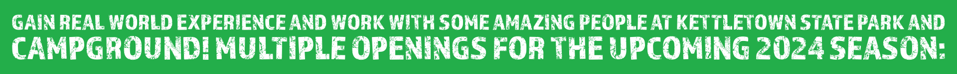 Acts as primary visitor contact, works to increase the public's understanding, appreciation, enjoyment of, and concern for the natural resources of our State Parks; conducts a variety of interpretive programs that may include, but not limited to, lectures, classes, tours, field walks, canoe trips, campfire programs, and special events to a wide variety of audiences; may assist with program development; cleans Nature Center, displays and animal cages/tanks; feeds and cares for animals. Must be fluent in English.