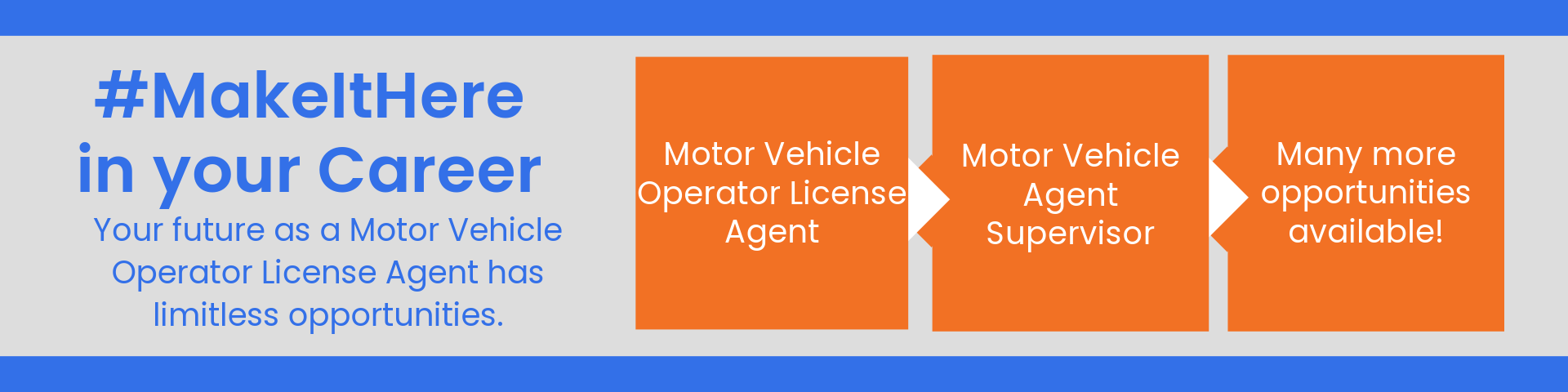In the Department of Motor Vehicles, Branch Operations this class is accountable for independently performing a full range of tasks in the administration of motor vehicle operator licenses and licensing and regulation of commercial and secondary driving school functions.