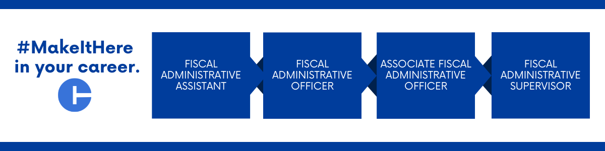 Career progression within the State of Connecticut: starting with Fiscal Administrative Assistant advancing to Fiscal Administrative Officer, Associate Fiscal Administrative Officer, and ending at Fiscal Administrative Supervisor.