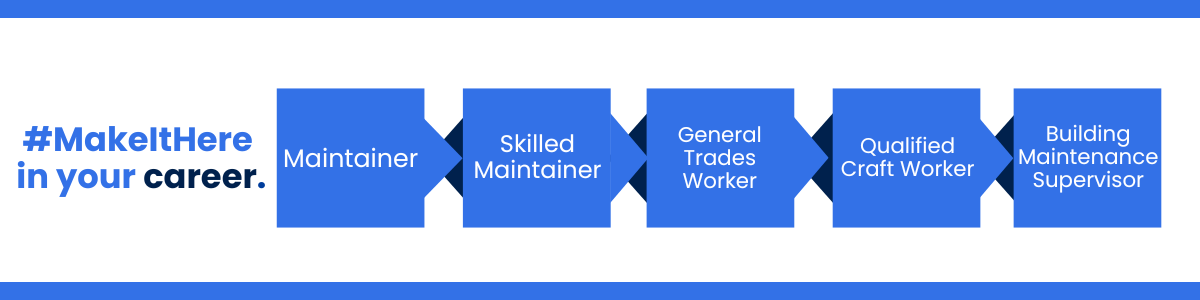 Career progression within the State of Connecticut: starting with Maintainer, advancing to Skilled Maintainer, then General Trades Worker, then Qualified Craft Worker, and ending at Building Maintenance Supervisor.