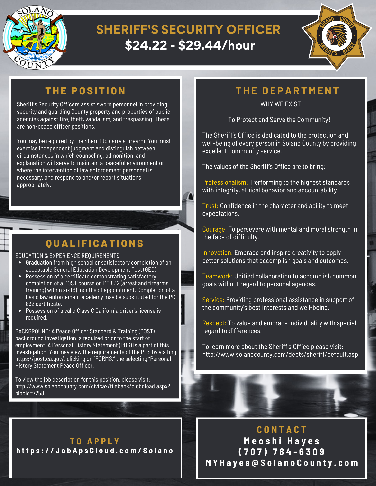 | Contact Information | Meoshi Hayes (707) 784-6309 |